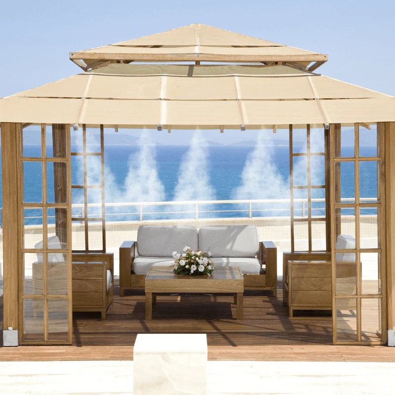 Nos services incluent la brumisation pour rafraîchir naturellement les espaces, le chauffage aux pellets pour un confort optimal en hiver, ainsi qu’une offre d’équipements tels que tables et chaises pour les événements. Nous travaillons aussi avec des hôteliers et des privés, garantissant des solutions adaptées à chaque contexte.
